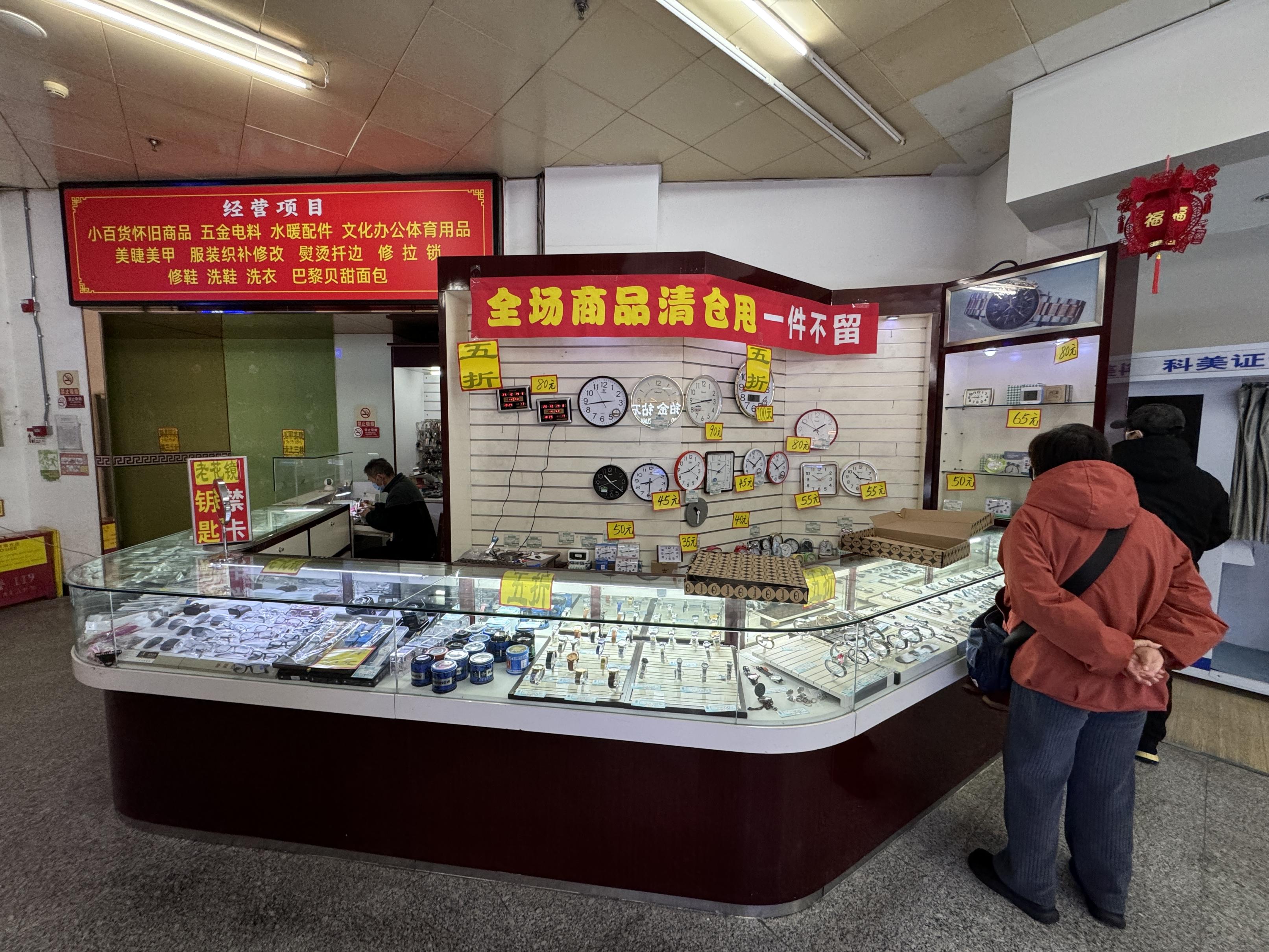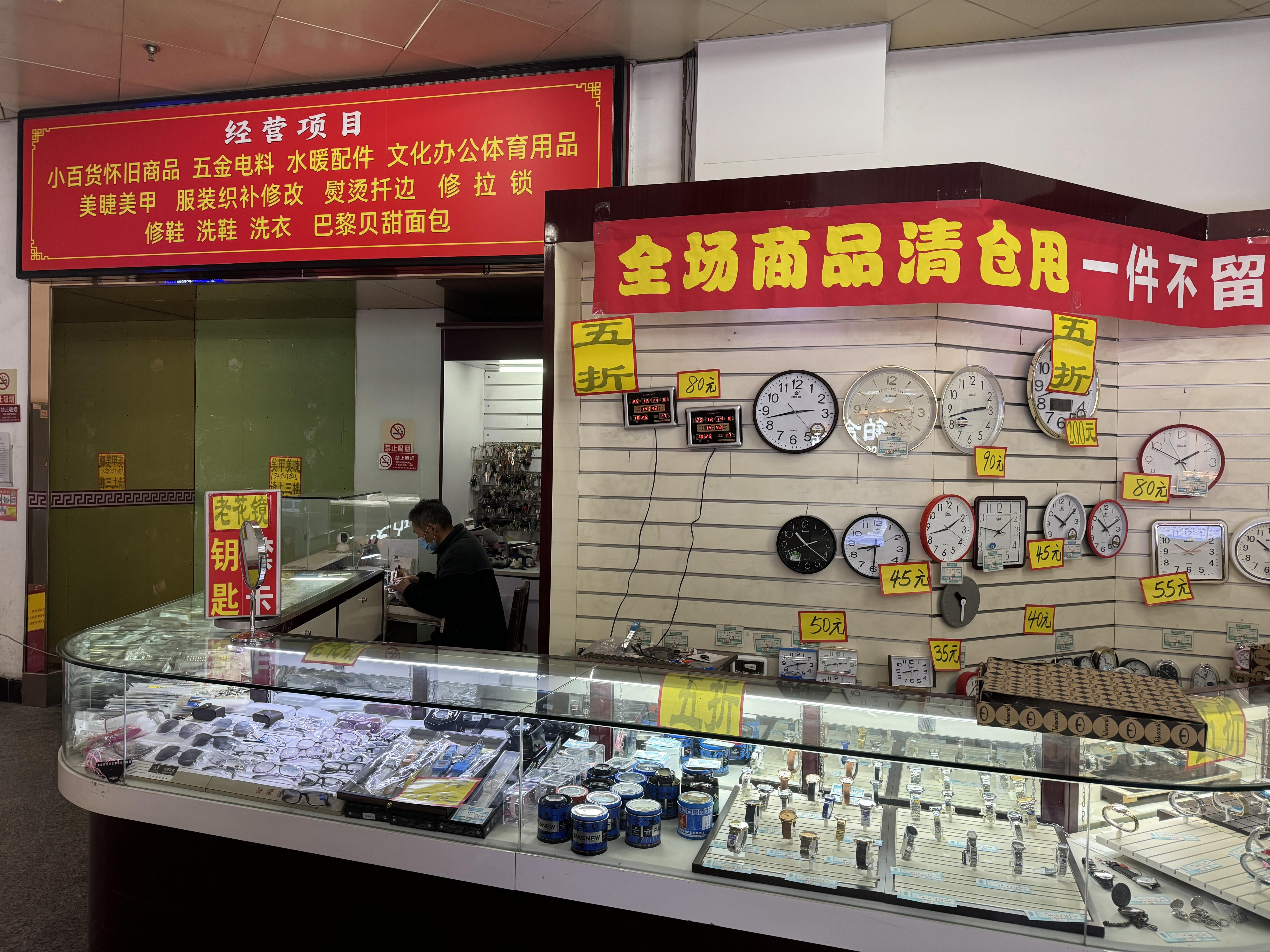 记者看到,目前朝阳商业大楼内大部分店铺已搬空,一层剩余的珠宝黄金、日用百货等摊位都已经挂出了“全场清仓、打折甩卖”等字样的海报。一层钟表柜台的店主张师傅在朝阳商业大楼营业已经近20年了,他表示,近期商场传出升级改造的消息后,不少老顾客都前来打卡留念,目前他店里的挂钟、老式手表等商品也正在进行打折清仓出售。“我们都接到了通知,商场大概开到这个月底,随后就要闭店改造装修了,大概春节前会重新开业,到时候我还在一层这里经营。”张师傅说。“从小就在张师傅家这里修表,师傅手艺很细,就算是换块电池,都会仔仔细细写好日期贴个标签在里面,希望这样的老柜台能保留。”一位市民说。