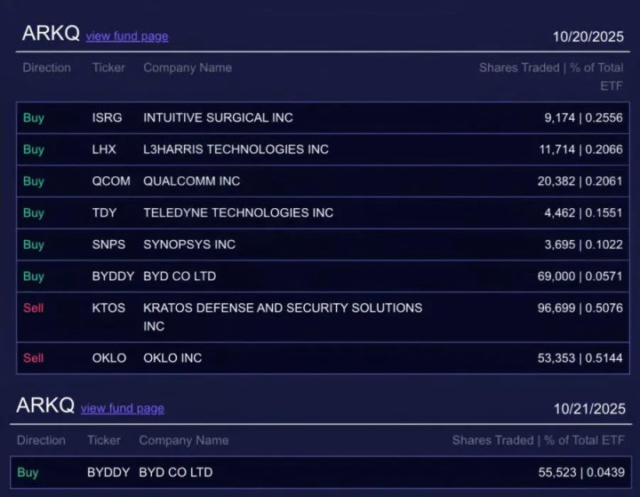除国际投行外忆速配,以凯茜·伍德(女版巴菲特)旗下方舟投资为代表的长线资金,也在加速布局比亚迪。方舟投资在10月20日通过旗下ARKQ基金买入69000股比亚迪,10月21日再度增持55523股,这一连串的动作,充分表明了该资本对比亚迪前景的看好。